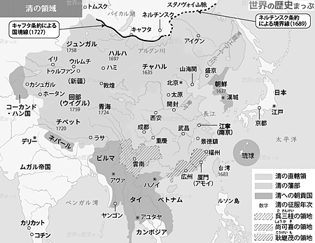 新疆とチベットが清の領土に。